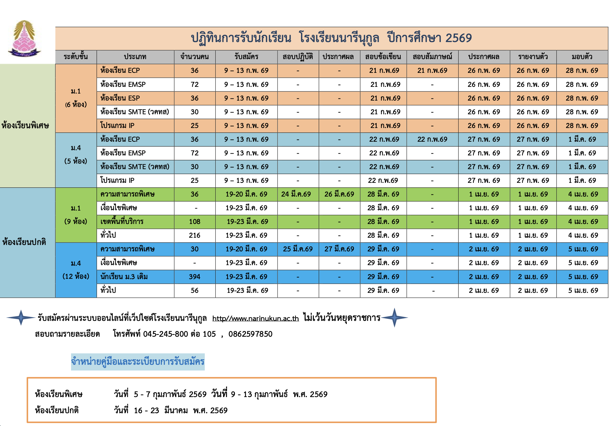 กำหนดการรับสมัครและสอบคัดเลือกนักเรียนห้องเรียนพิเศษ ปีการศึกษา 2569